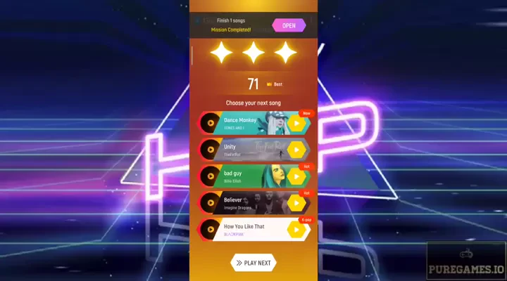 Para tocar uma nova música durante cada jogo do jogo, ela deve ser desbloqueada com gemas ou dinheiro.